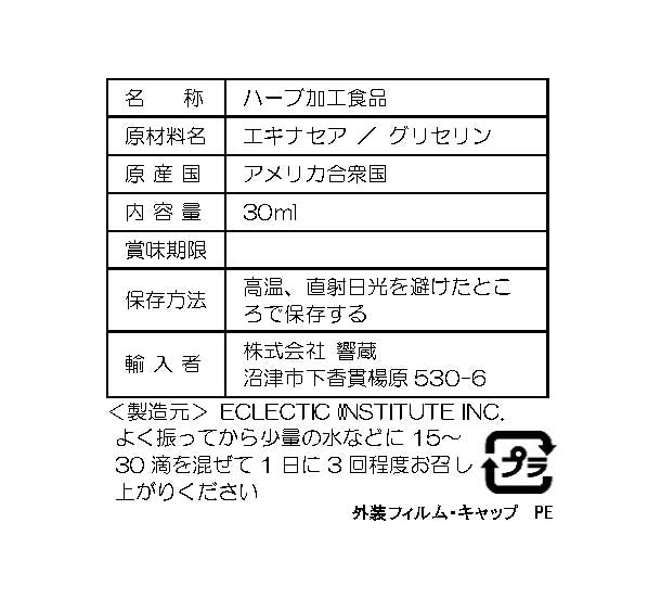 単価 あたり原材料:野生エキナセア の全草 / 植物性グリセリン
