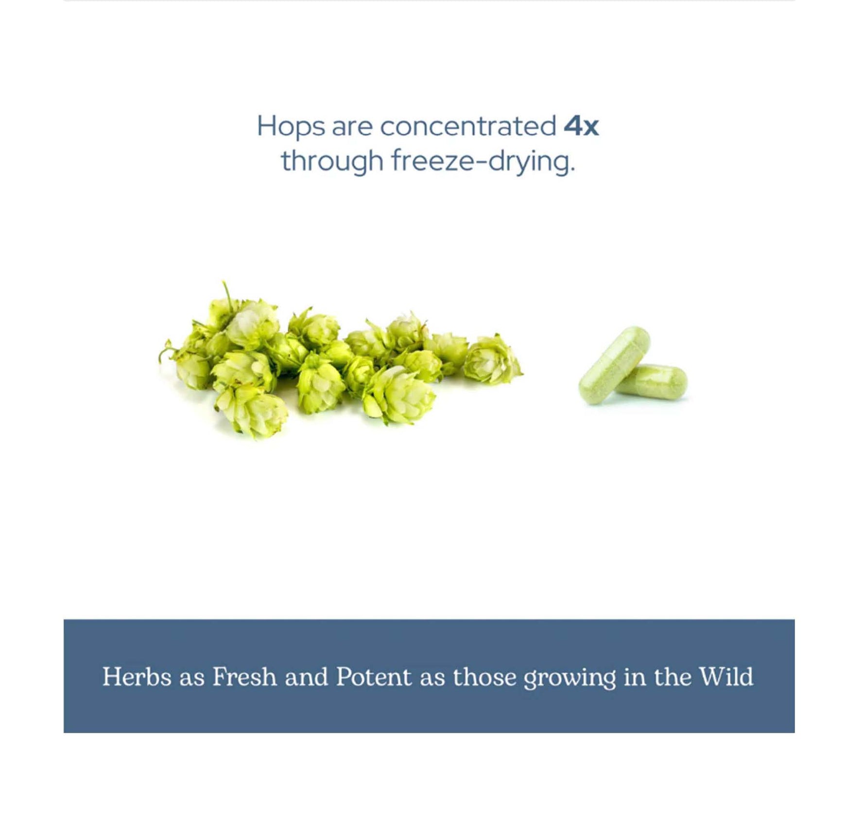 eclectic HERB のホップは、フリーズドライ製法により4倍に濃縮されています。保存料や着色料は一切使用せず、グルテンフリー・非GMOで製造。熱で壊れやすい成分もそのままキープ。野生で育つハーブと同じぐらい新鮮で力強いハーブです。