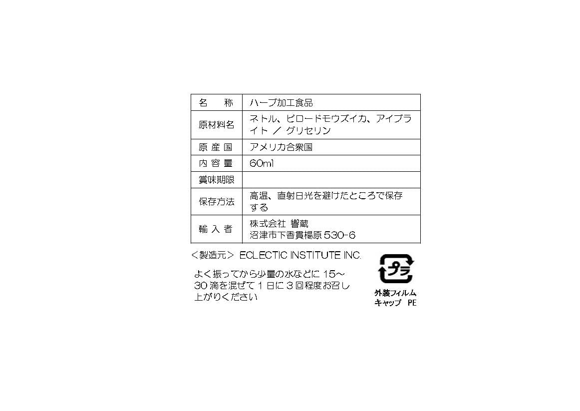単価 あたり原材料:野生イラクサの葉、ビロードモウズイカ、アイブライト / 植物性グリセリン