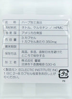 原材料:ネトル(野生イラクサの葉)、ケルセチン(植物由来)/HPMC(カプセル素材)